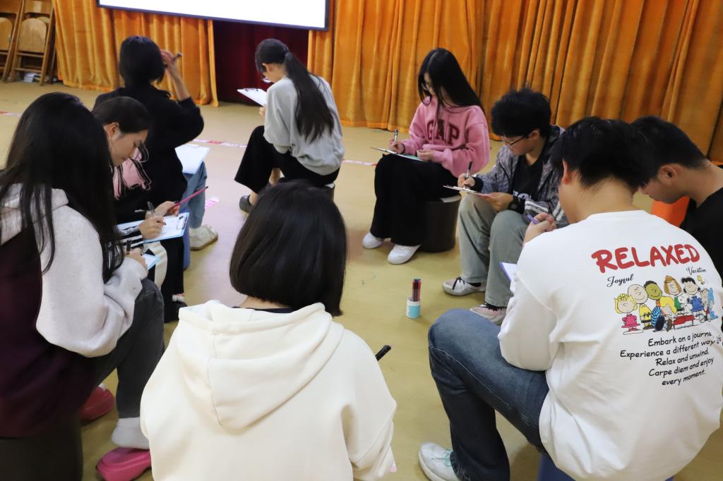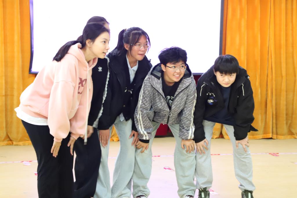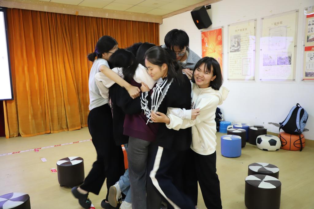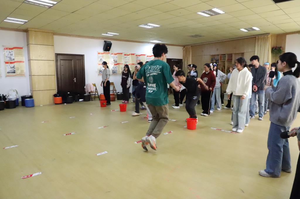 活动伊始,“口香糖”热身环节中同学们按指令快速找到对应人数的同伴“粘”指定身体部位,未成功完成的同学则分享近期趣事。现场笑声此起彼伏,陌生感在互动中悄然消散,成员间距离被快速拉近。