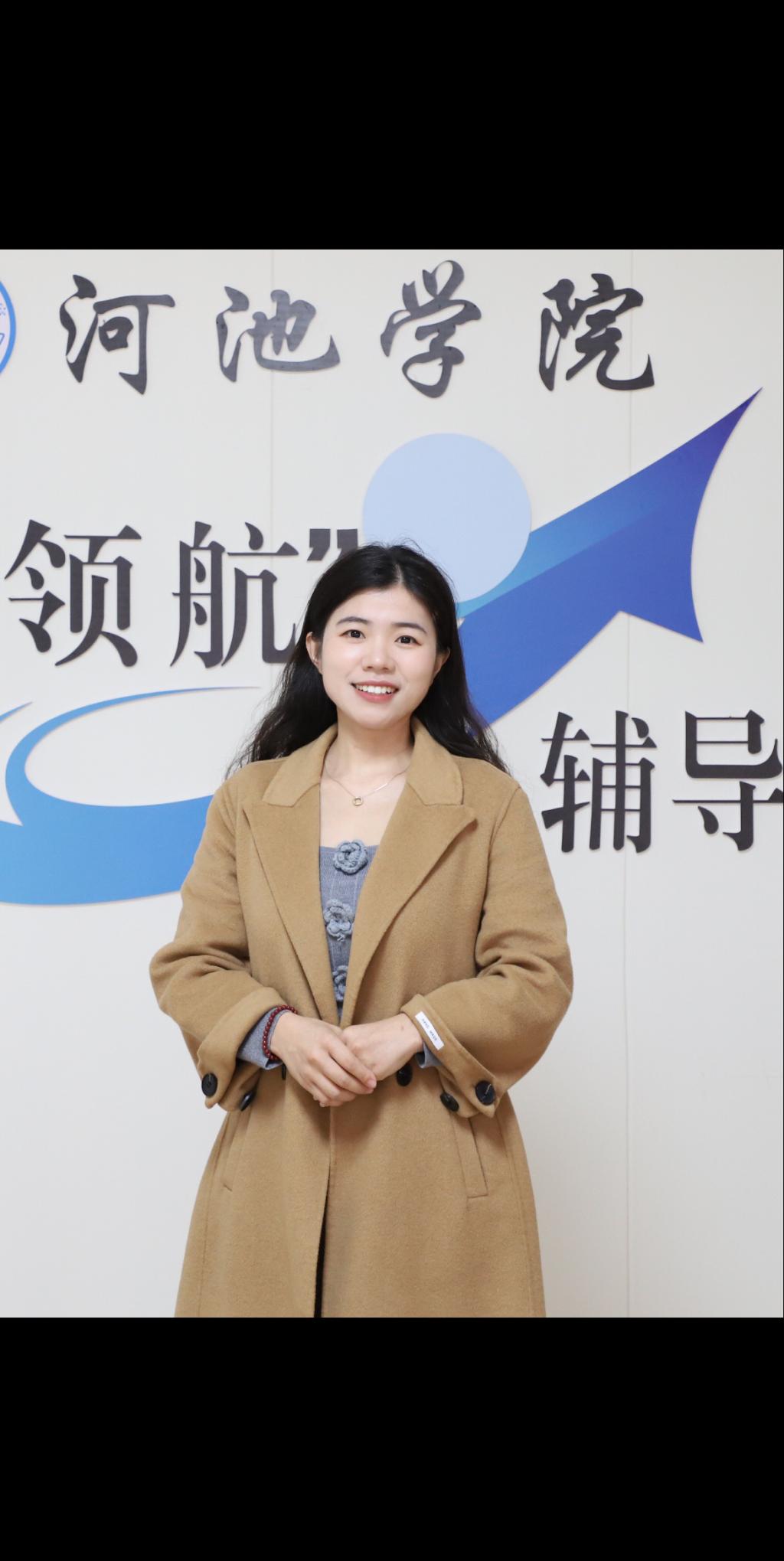 张金伶,女,意大利艺术绘画硕士,大学生心理健康教育中心兼职教师,共青团河池市委员会担任挂职副书记,同时担任河池学院创新创业学院办公室主任,大学生心理咨询师,自治区“优秀创业导师”;获"广西壮族自治区职业能力鉴定中心﹣大学生心理辅导"专项职业能力证书;2020年以来荣获教育部思政司、易班网“优秀指导老师”11项、最佳课程奖”2项。荣获2022年全区高校网络教育优秀作品推选展示活动一等奖、自治区级荣誉5项荣誉。2022以来获评为河池学院“优秀党务工作者”“五一建功标兵”“巾帼建功标兵”“优秀教育工作者”等多项荣誉。主持完成广西高校大学生思想政治课理论教育课题1项,参与市厅级研究、教改课题多项。指导1项创业项目荣获中国国际大学生创新大赛(2024)铜奖(国家级),主持广西教育科学“十四五”规划2023年度高校创新创业教育专项课题重点课题1项。擅长职业规划、人际关系、适应心理等咨询与辅导。
